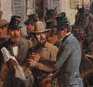 Auf dem Gemälde „Einzug der Freischaren unter Weißhaar in Lörrach“ porträtierte der Maler Friedrich Kaiser auch den 26-jährigen Friedrich Neff. Eine zylinderförmige Studentenmütze auf dem Kopf steht er etwas verdeckt rechts hinter dem Revolutionsführer Gustav Struve. Als einer der wenigen schloss er sich in Lörrach dem Weißhaar-Zug an. Während der Revolution wurde Struve zu seinem Idol. Dieser wiederum schätzte Neffs Offenheit, Zuverlässigkeit und Organisationstalent.